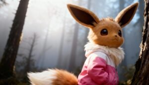 Mist, moss, and filtered light: Eevee wears Zara and the forest whispers runway. Soft layers, calm poise, a floating camera in rhythm. AI editorial with a mystical touch. Unofficial creative piece.