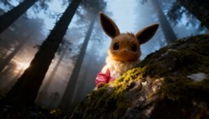 Bruma, musgo y luz filtrada: Eevee viste Zara y el bosque susurra pasarela. Capas suaves, gesto sereno, cámara que flota al ritmo. Moda editorial con IA en clave mística. Pieza creativa no oficial.